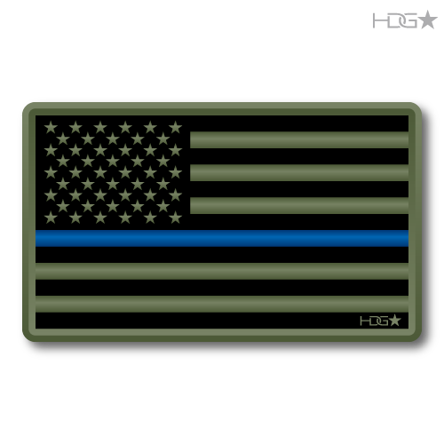 US Flag Subdued OD Green Thin Blue Line Decal